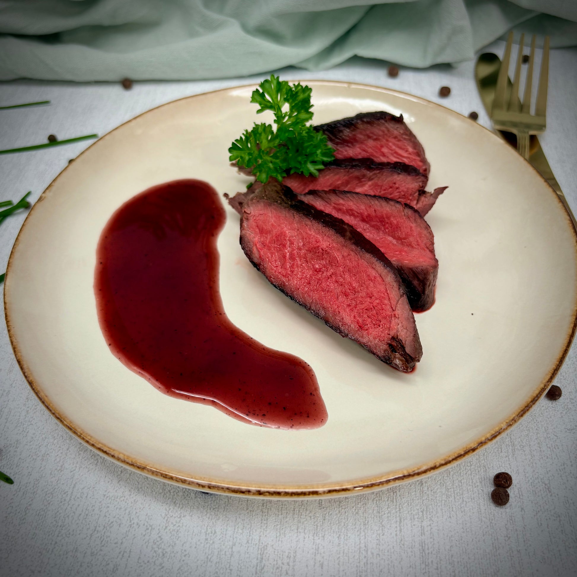 Rose gebraden diamanthaas met rode portsaus